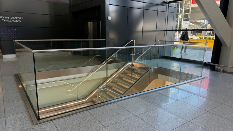 As part of the project for the Gdańsk Lech Wałęsa Airport terminal, we supplied laminated glass of 88.4 ESG construction. It was used in the execution of self-supporting balustrades, combining high aesthetic value with full user safety.
